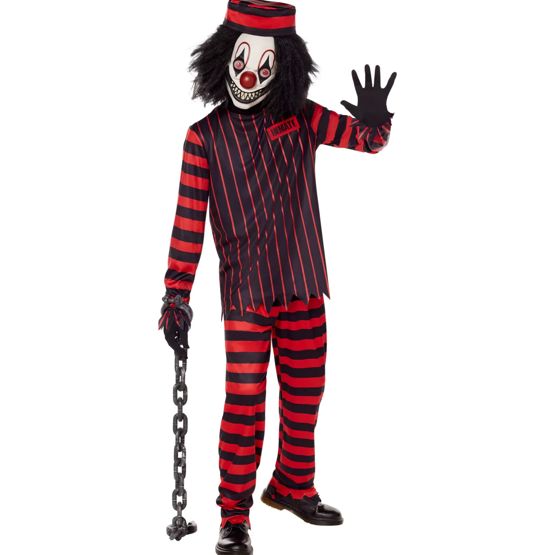 Want to clown around this Halloween? Get ready to wreak havoc all throughout the neighborhood when you dress up in this Criminal Clown Costume. Featuring an incredibly creepy full mask, a black and red striped shirt, and a matching pair of pants, this outfit will transform you into a true troublemaker.