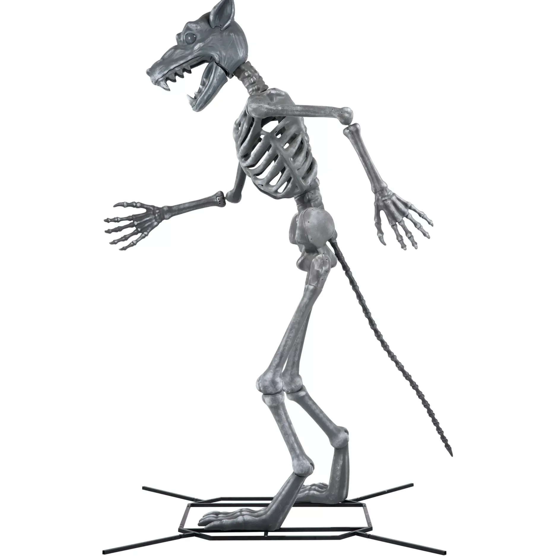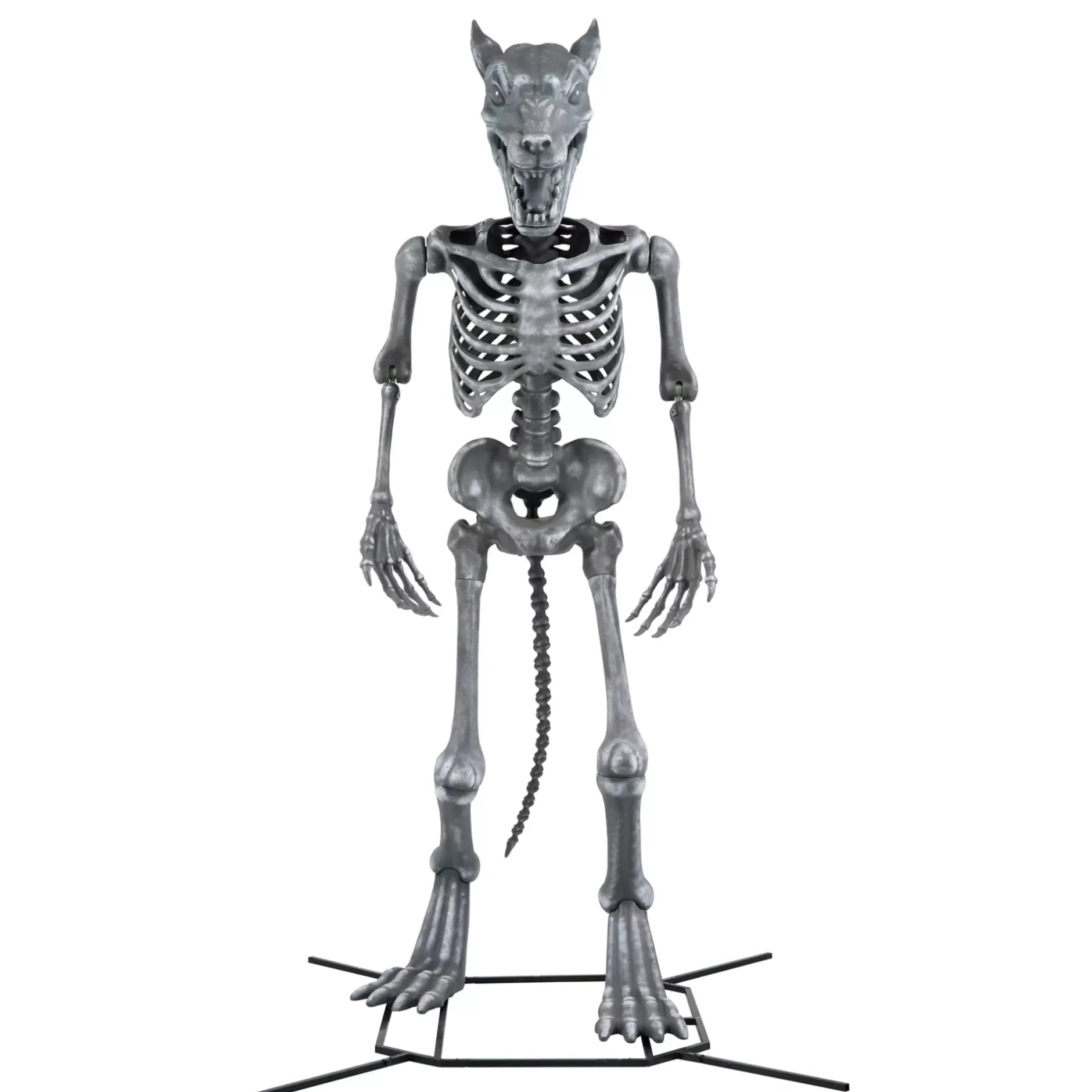 Your Halloween display is about to get a lot more feral once you add the Wolfie Animatronic to your collection of Halloween decor. Towering over you and your guests at 10 feet tall, this ferocious animatronic features poseable arms allowing you to adjust his stance to fit perfectly in your home. With red light up LED eyes and a collection of scary growling and howling noises, you’ll know when he’s about to pounce once he let’s out his deafening howl and reveals his toothy smile.