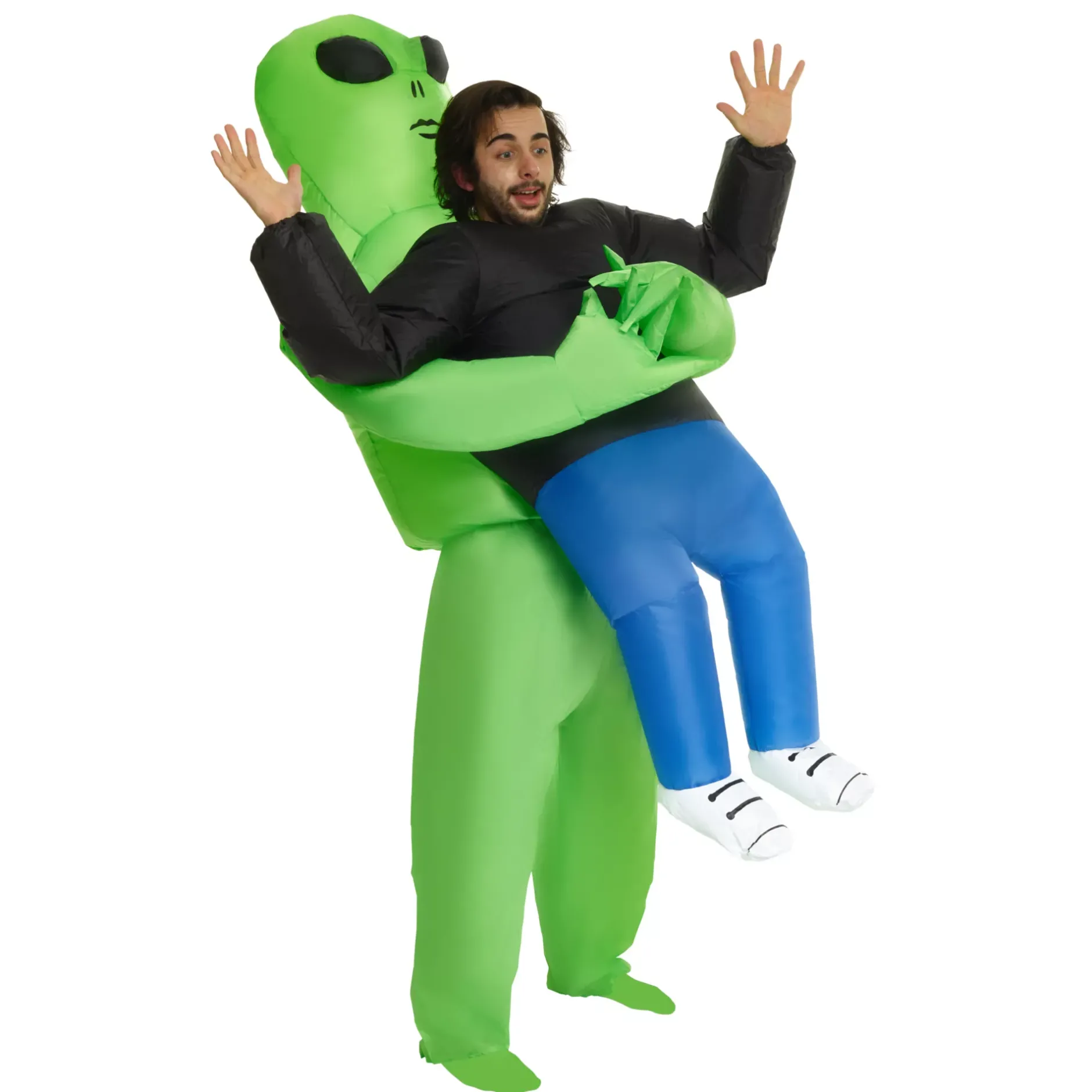 You’ll look like you’re being abducted this Halloween! Wear this alien pick me up inflatable costume and blow away the entire Halloween party! The green alien will make people question where you’re from and you’ll fit right in to every area 51 theme!