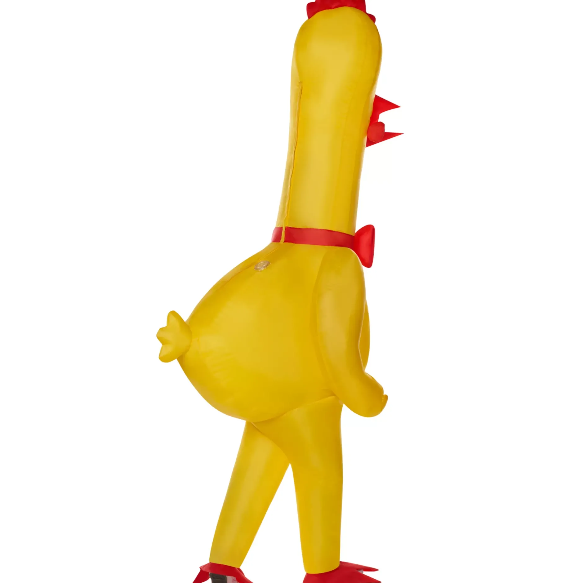 Are you going to wear the funniest costume on the market this year, or are you too chicken? This rubber chicken costume features a comical yellow jumpsuit that stays puffed up with the help of an internal fan. Big, beady eyes and a red bow tie add the perfect finishing touches to this hilarious getup.