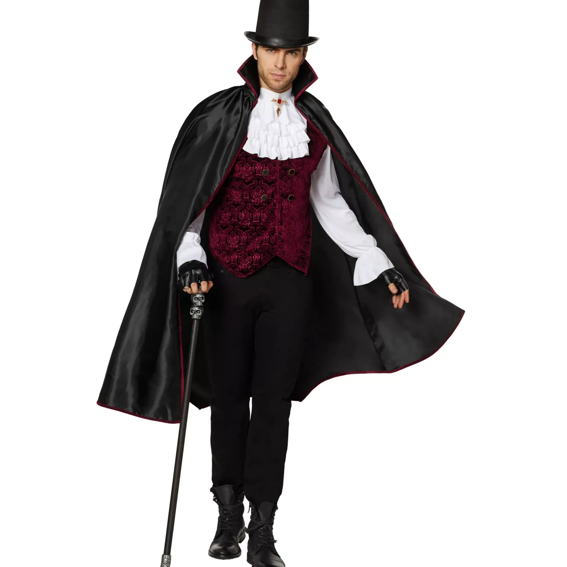 Thirsty for some blood? This adult vampire costume will get you ready for nightfall. The velvet shirt features a paisley design that will have you looking sophisticated during your hunt for dinner. The circular flounce sleeves and tiered collar detail are the perfect addition to this flawless costume. The included goldtone broach will let everyone know that you’re an authentic vampire. Complete your look with the velvet-trimmed included cape and you’ll be ready for the next Halloween party!