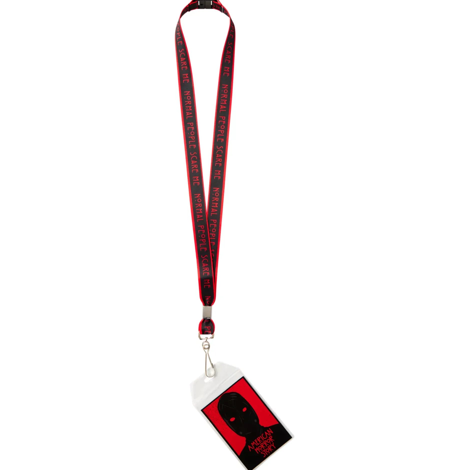 Show off your favorite TV show with this American Horror Story lanyard. This fun lanyard is the perfect way to carry your ID and keys in a convenient way.