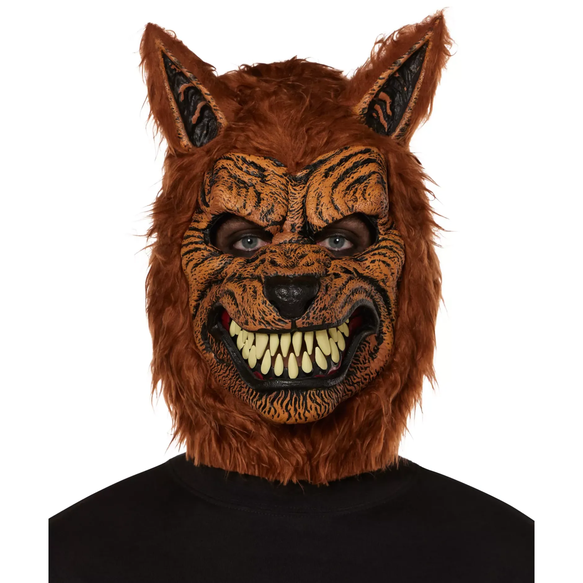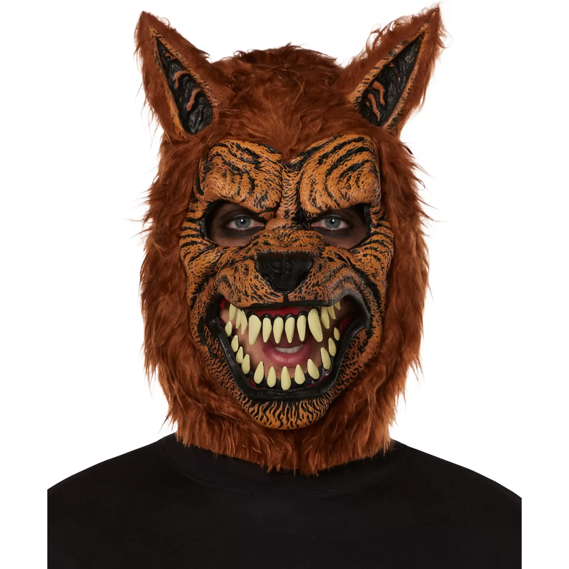 What’s the most horrifying thing about a Werewolf? When it opens it’s mouth with fangs bared as it prepares to rip the flesh from your bones. Capture the horror with this awesome brown Werewolf Ani-motion mask – it’s mouth and lips move when you do, creating an authentically terrifying and realistic Werewolf effect. This is an easy and comfortable costume as it can be worn with ordinary clothing.