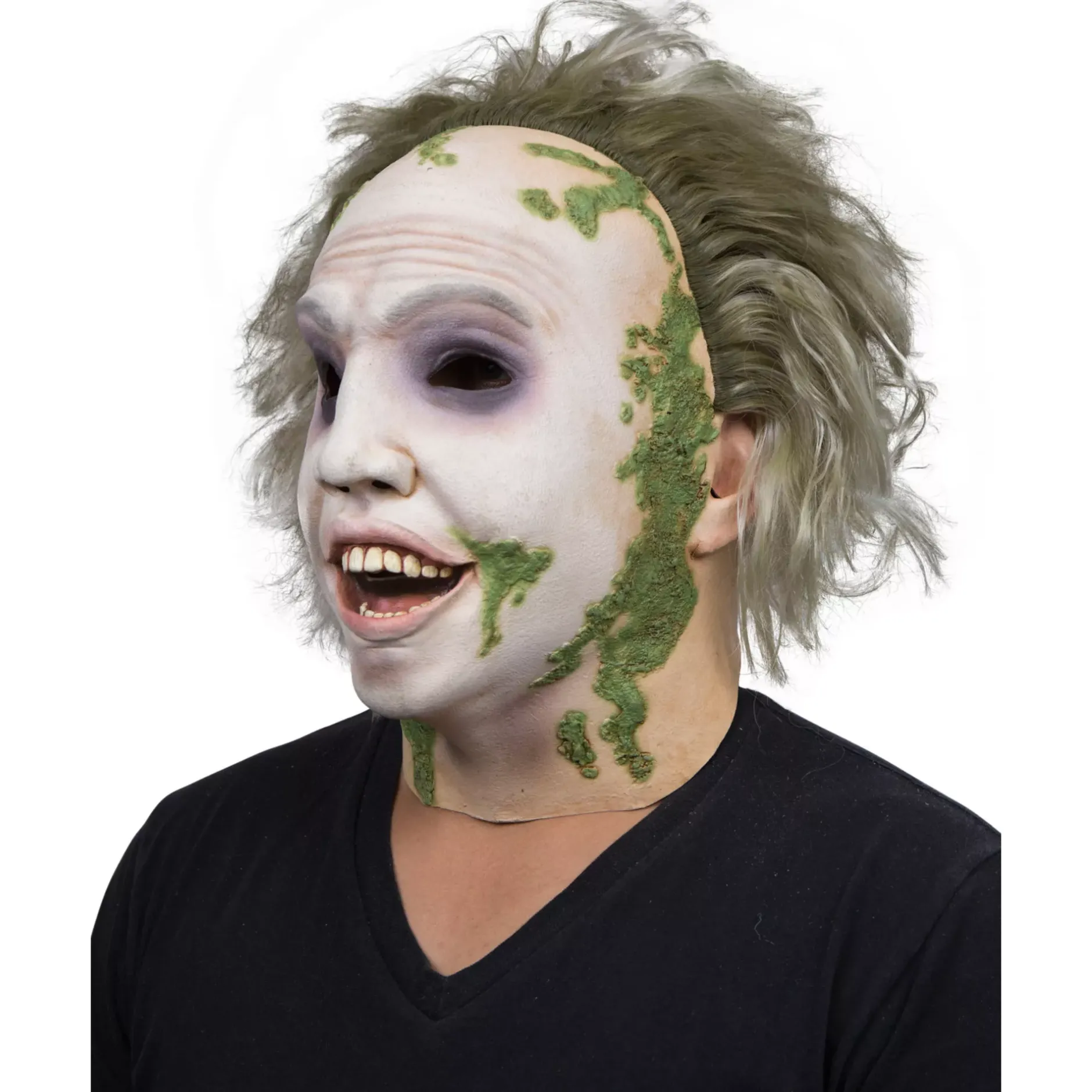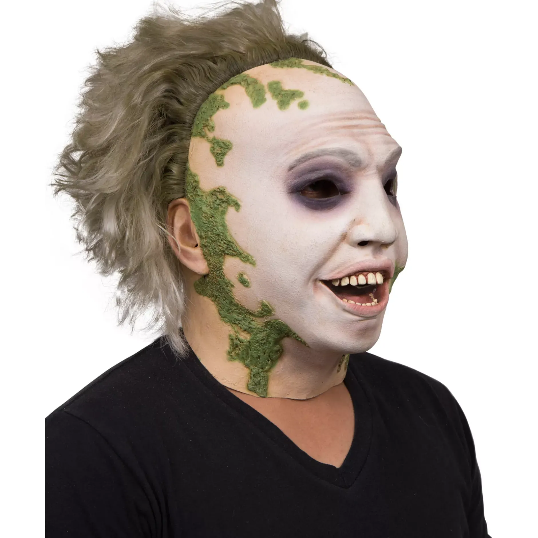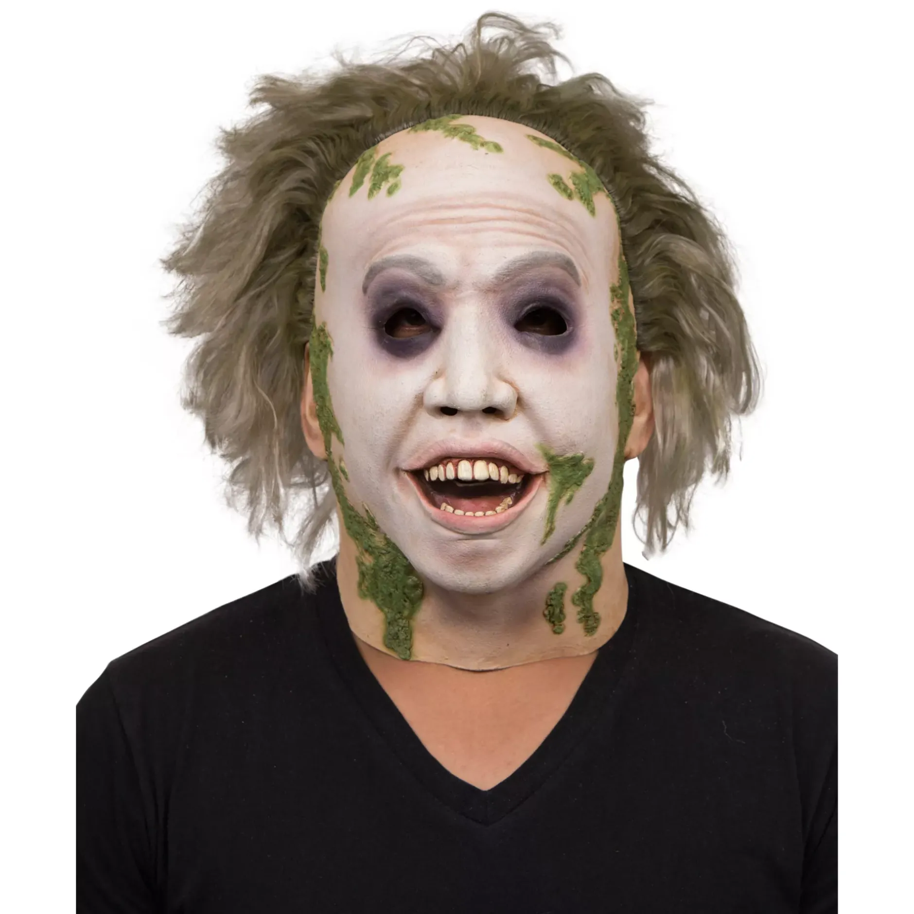 Look like the star of your favorite movie with this official Beetlejuice full mask! This detailed Beetlejuice mask, including hair, is the perfect way to go all out with your look this Halloween.