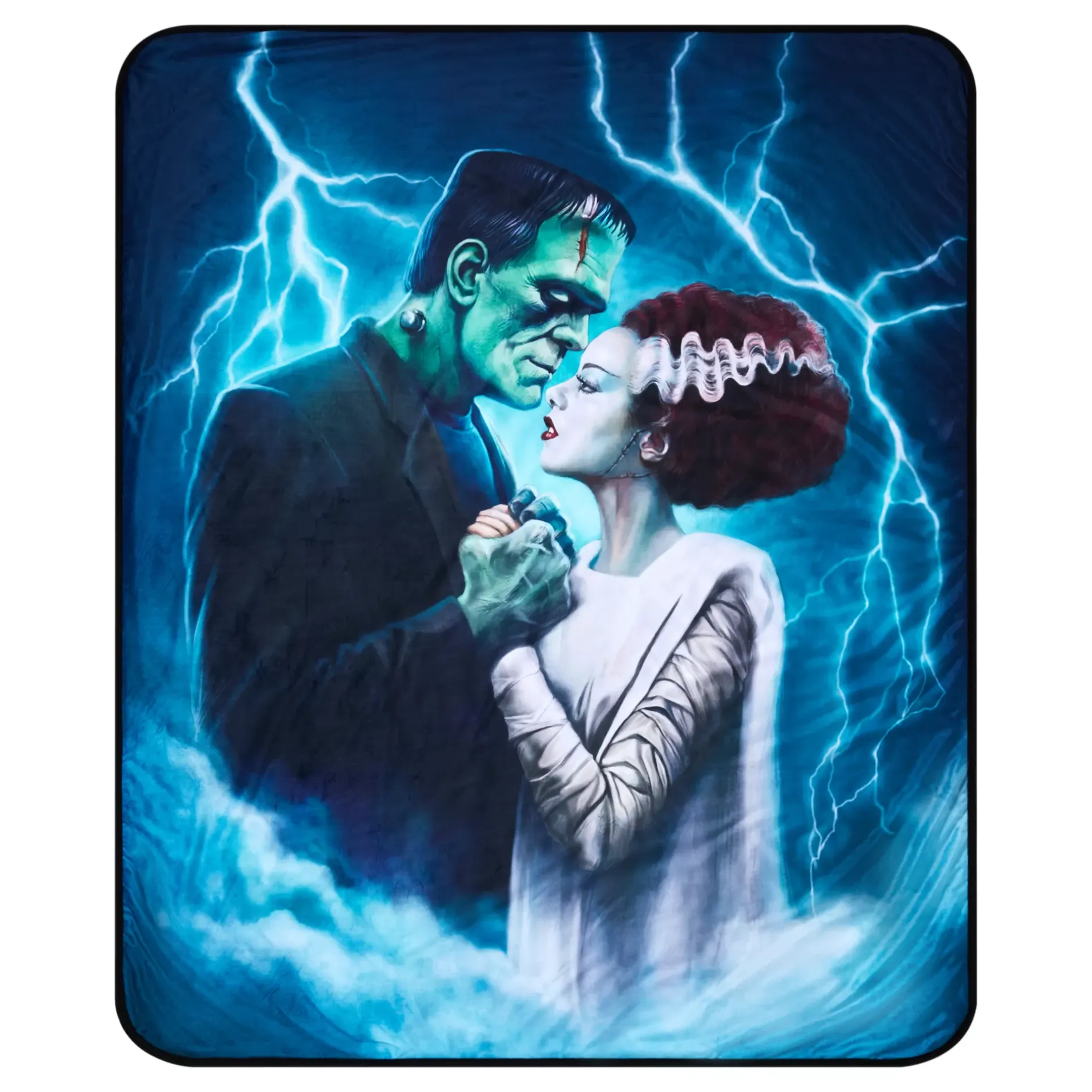 No love ever felt so alive. Pay homage to one of the most iconic classic horror duos when you cuddle up with this officially licensed Bride and Frankenstein Fleece Blanket! Made with scary-soft fabric and striking graphics, this fleece lets you know that nobody does universal style like Universal Monsters.