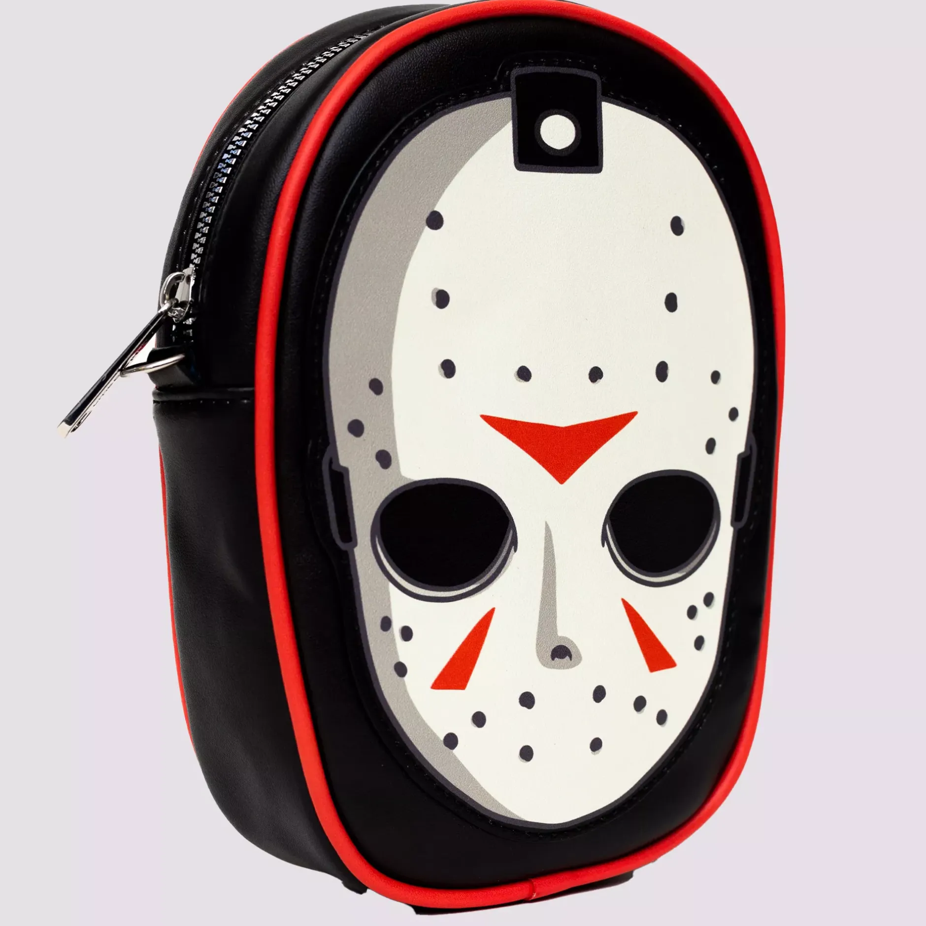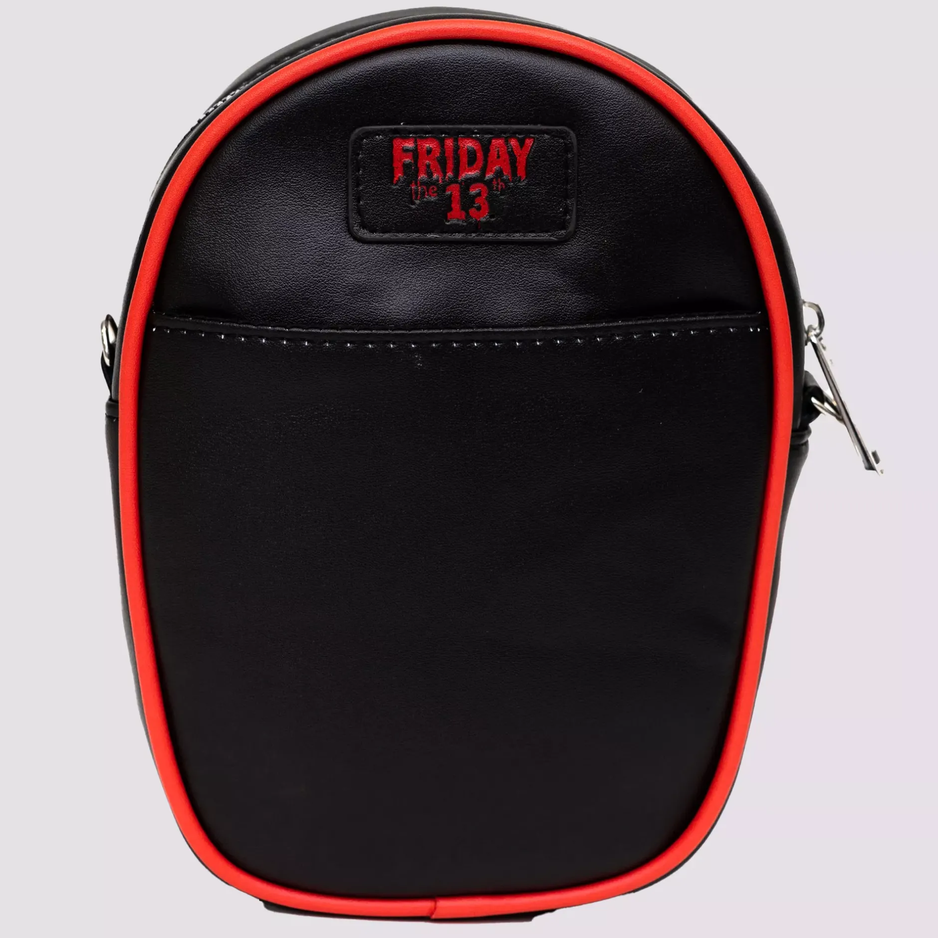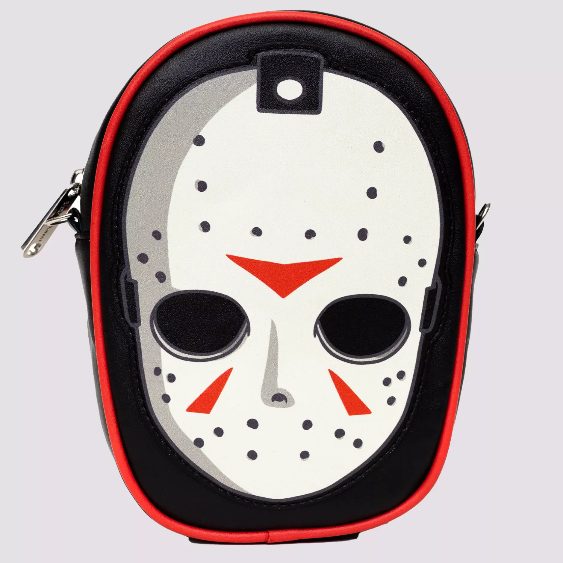 Unleash your dark side with this Friday the 13th-inspired crossbody bag, showcasing a chilling image of Jason Voorhees’ iconic hockey mask. This officially licensed Buckle-Down accessory is crafted from vegan leather and features an adjustable, removable strap, making it both stylish and convenient.