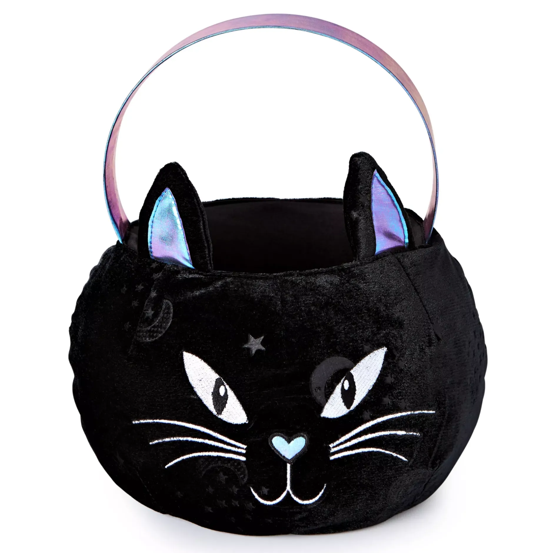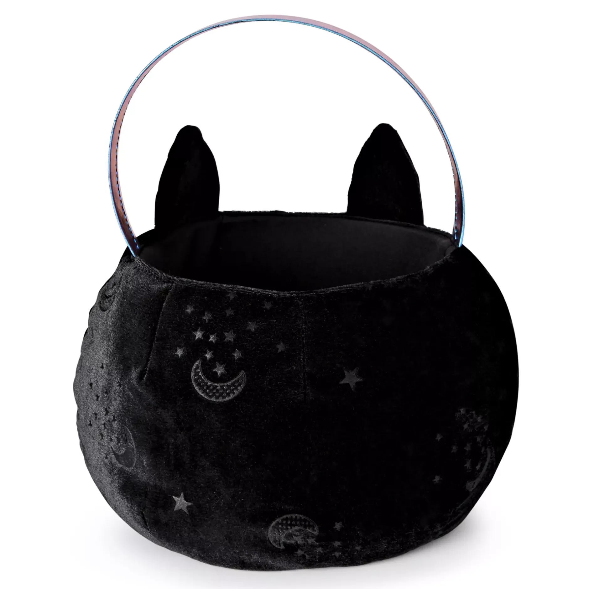 Every witch needs her black cat to follow her around all of Halloween night. Let yours carry all of your candy for you, too, with the Celestial plush cat treat bucket!