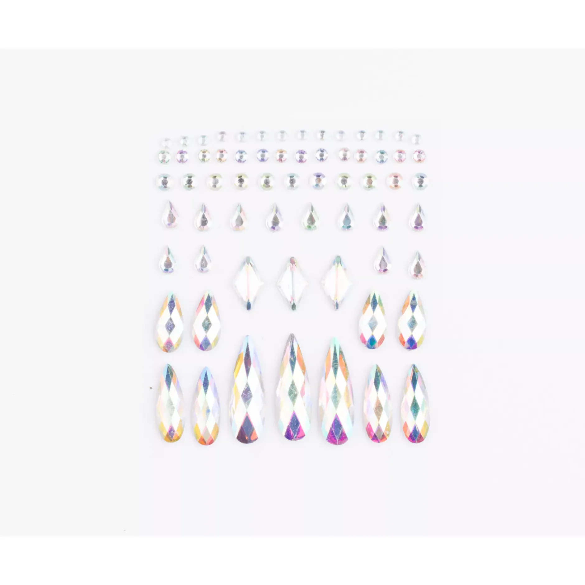 Sparkle and shine with this 65-piece adhesive gem stone set! Apply these stunning gems to clean, dry skin for a completely customizable glam look. Keep them all to yourself or share them with your friends for a dazzling day to remember!
