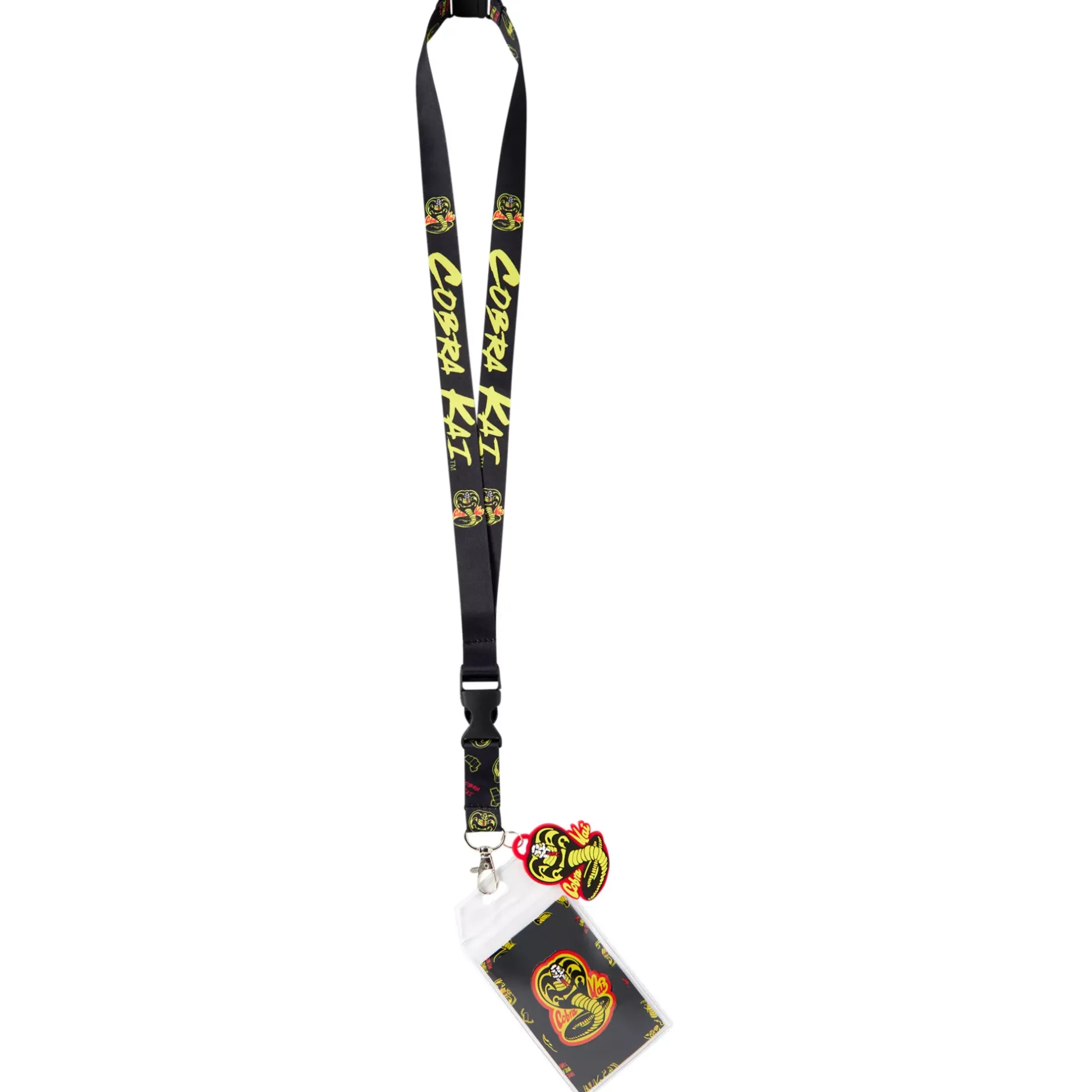 Show off your fandom with this fun Cobra Kai lanyard! Featuring Cobra Kai on the lanyard, strap and charm, this is a totally convenient way for any anime fan to carry their keys and ID.