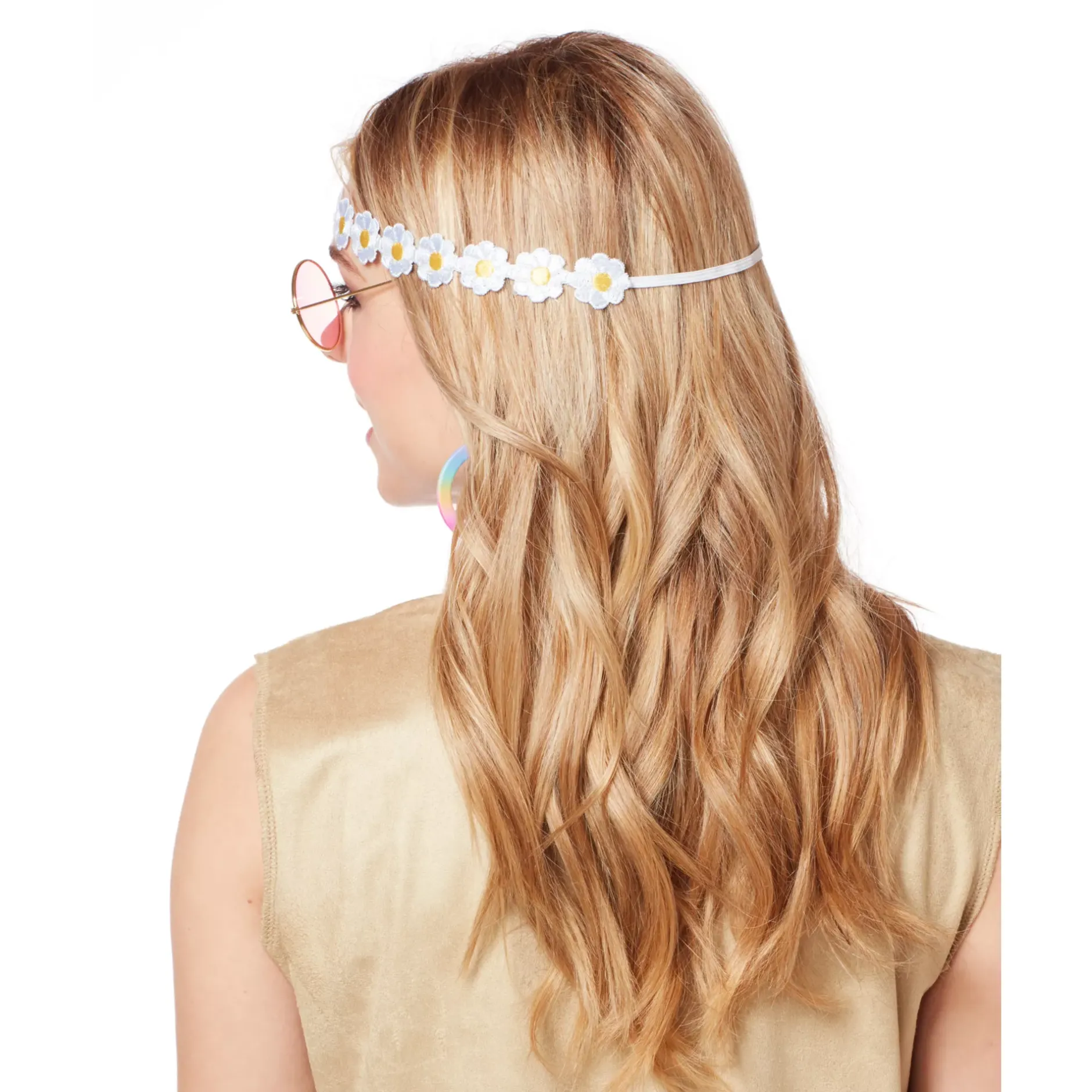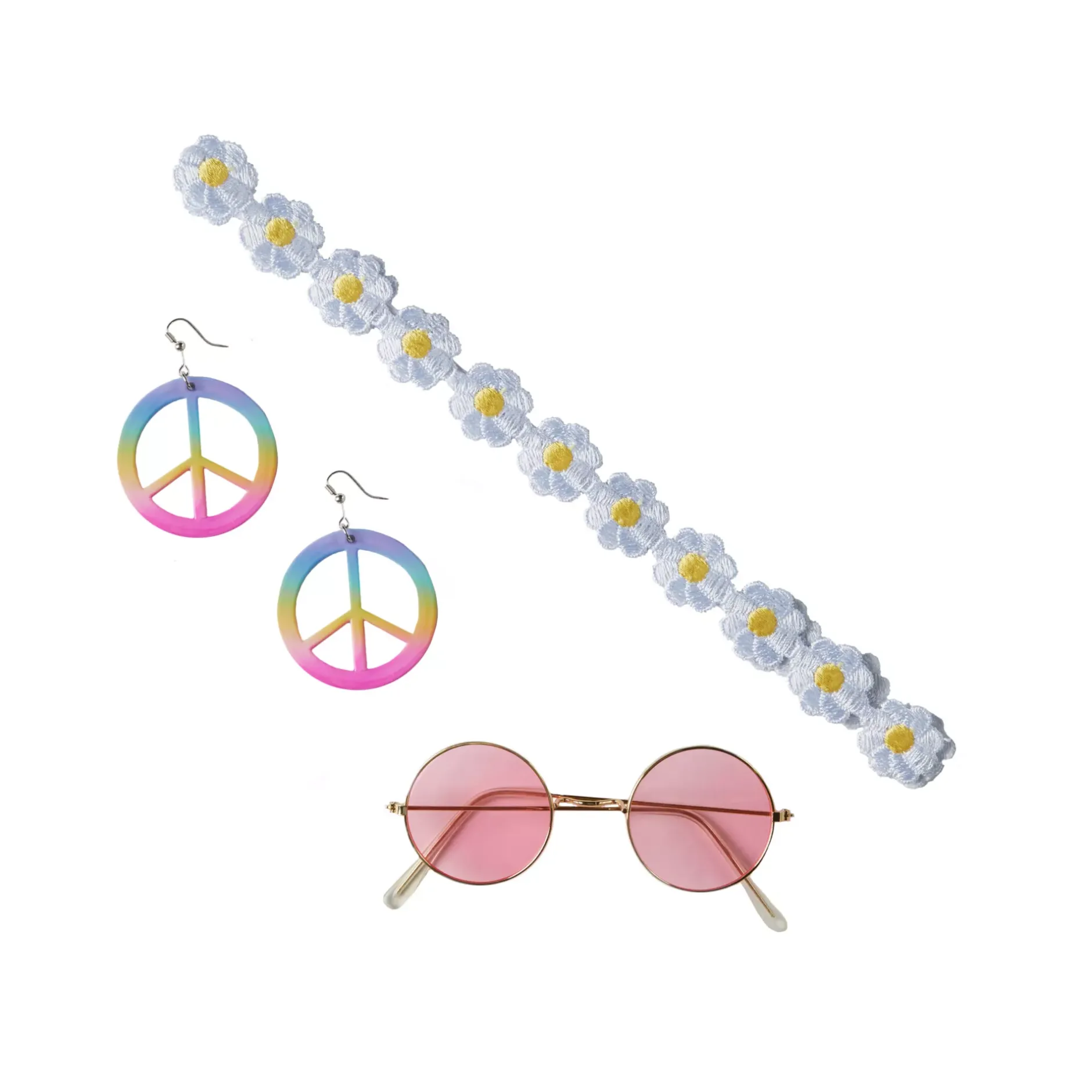 Peace out of your old attire and try something new on Halloween when you use this Hippie Kit. Rock star sunglasses, daisy headband and tie dye peace sign earrings go great with a tie dye shirt and a pair of bell bottoms.