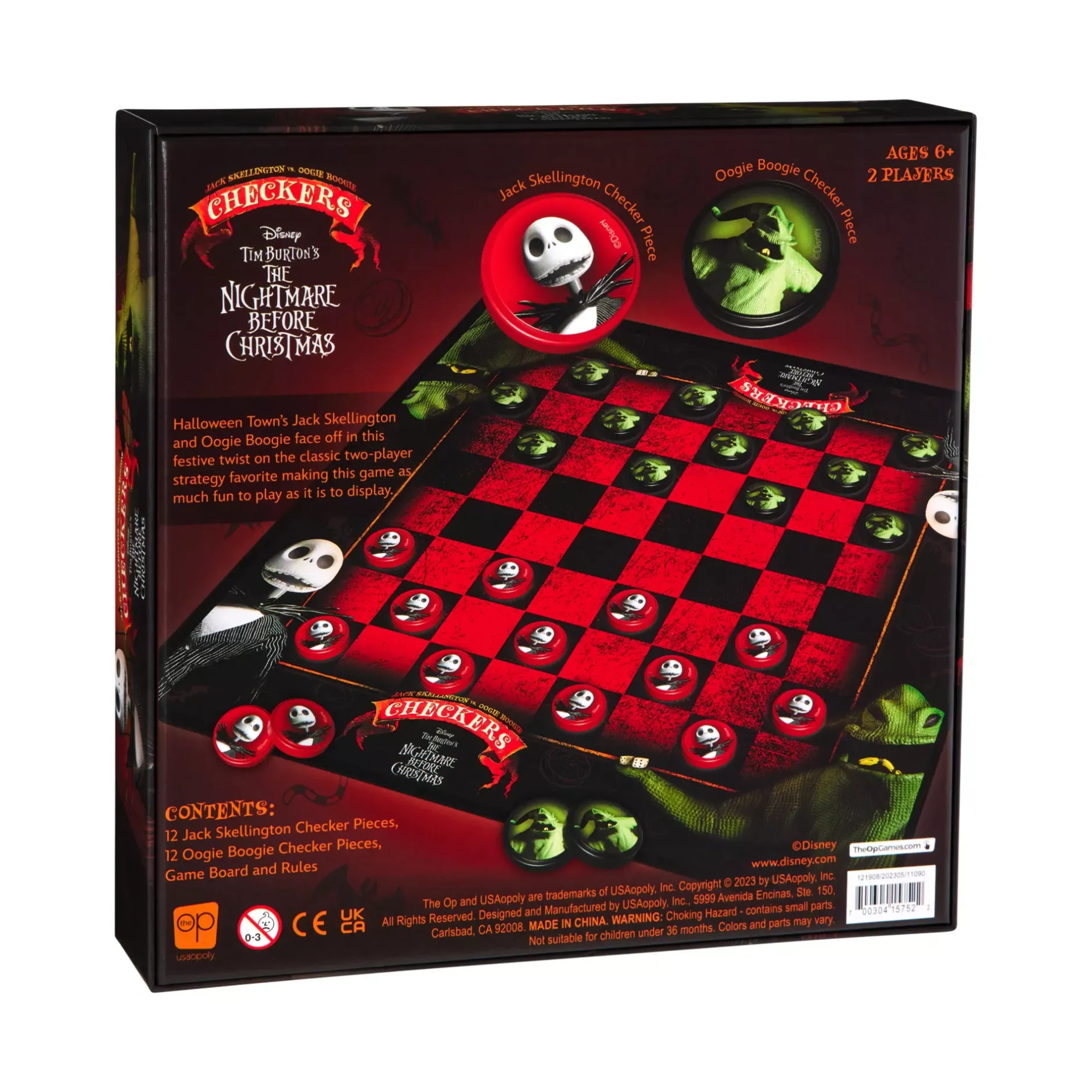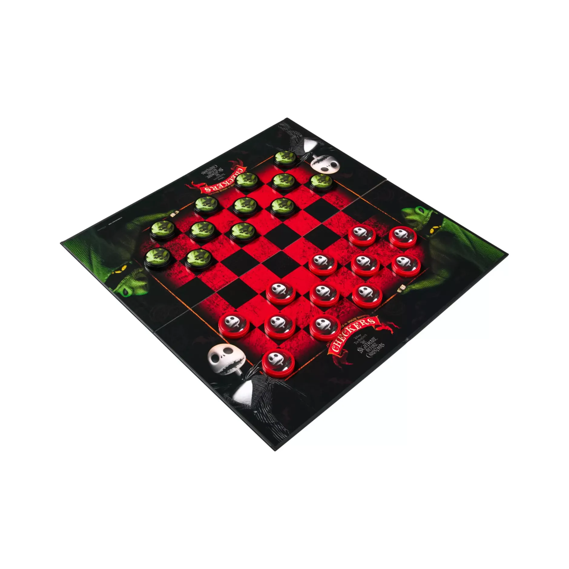 Add a dash of spookiness to your game night when you break out this officially licensed Jack Skellington vs. Oogie Boogie Checkers Set. Featuring 12 Jack Skellington checker pieces, 12 Oogie Boogie checker pieces, and a movie-themed game board, it’s the perfect way to embrace your competitive spirit and love for The Nightmare Before Christmas.