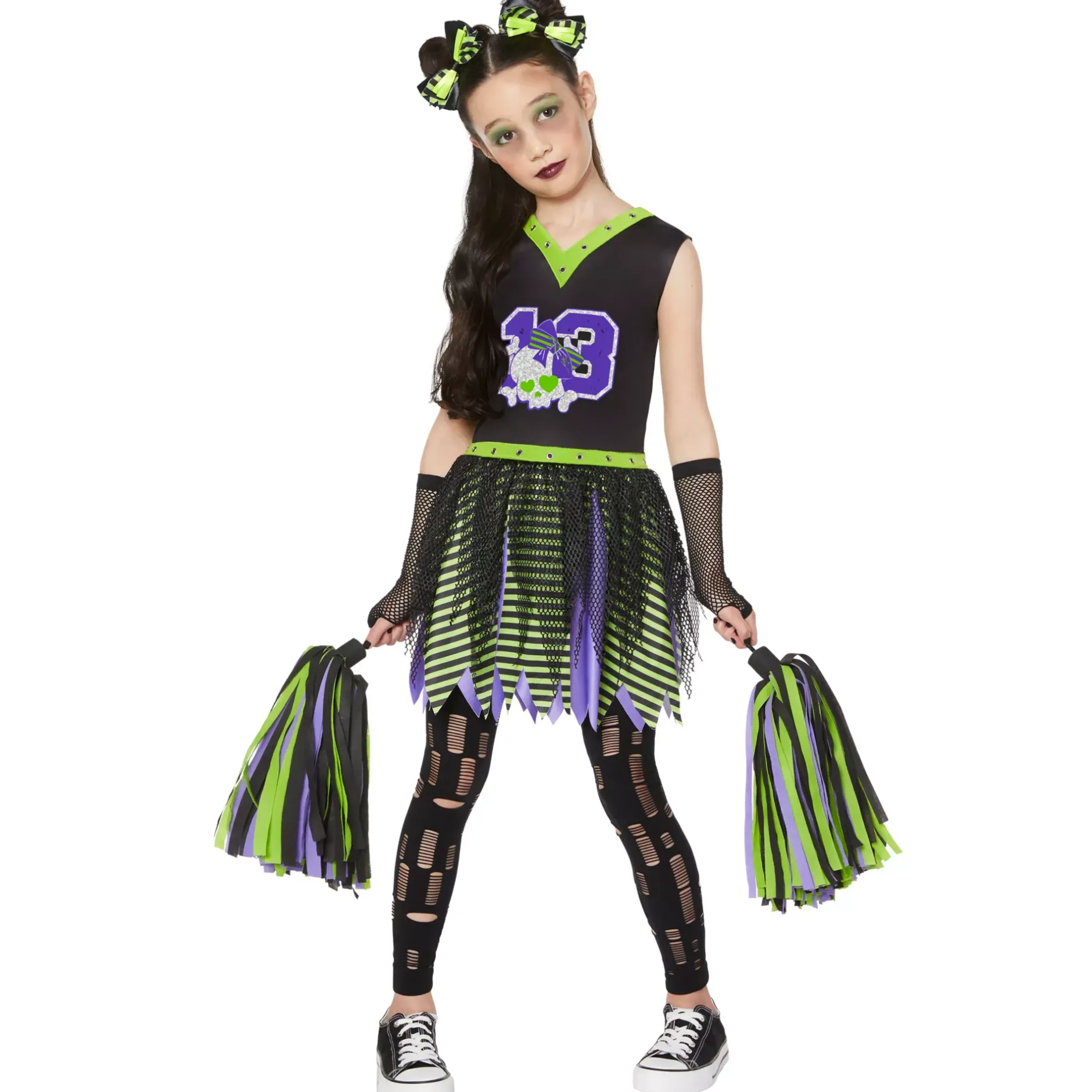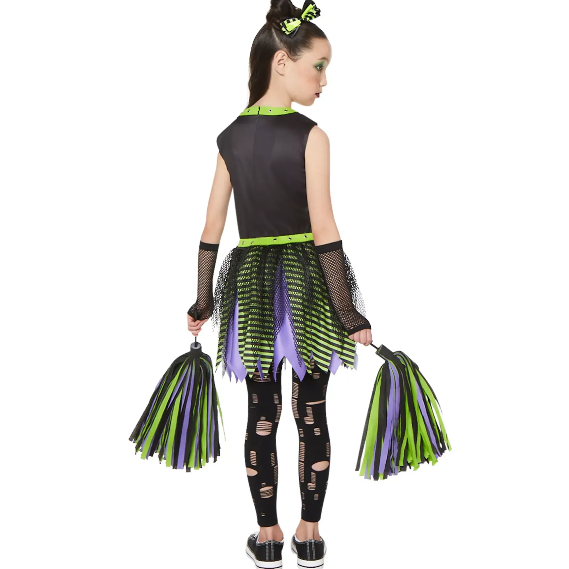 Take a break from eating brains and cheer on the home team when you wear this Kids Deadly Cheerleader Costume! This costume included a cheer dress, tights, hairbows, arm warmers, and pop-poms, transforming you into the ultimate fear leader! You might be dead, but your team spirit is alive and well.