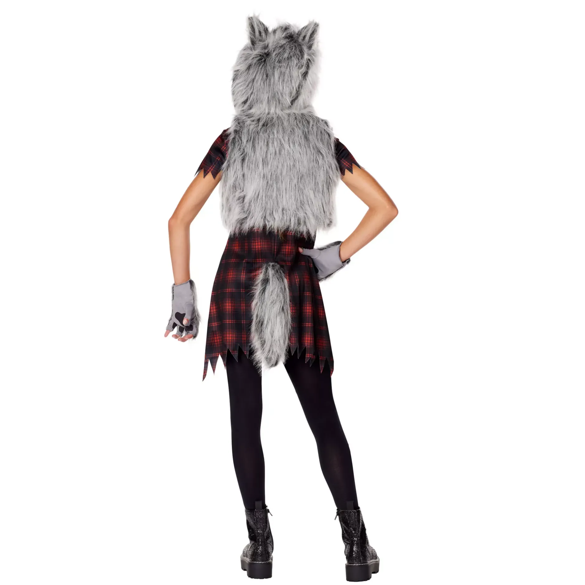 You’ll be a fierce and fabulous werewolf in this costume! This werewolf costume includes a tunic with an edgy, shredded hem, a faux fur hooded vest with attached werewolf ears, a fluffy tail, and a pair of fingerless gloves. Are you ready for a full moon?