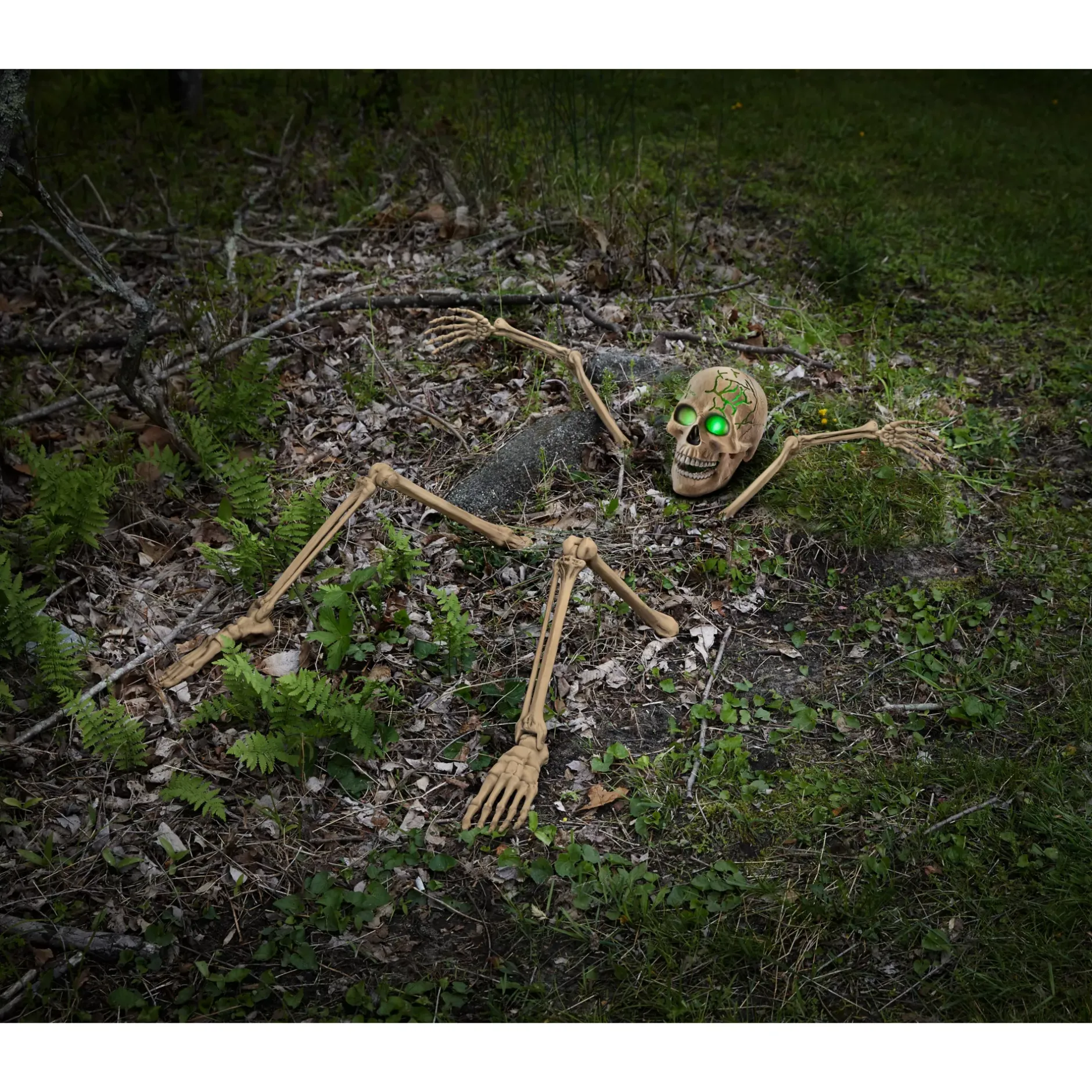 Buried and left for dead, nobody thought twice about these skeletal remains. That is, until they tried to claw their way back out! the light up brain on this skeleton ground breaker is sure to shock and scare your guests as it crawls back from the grave.