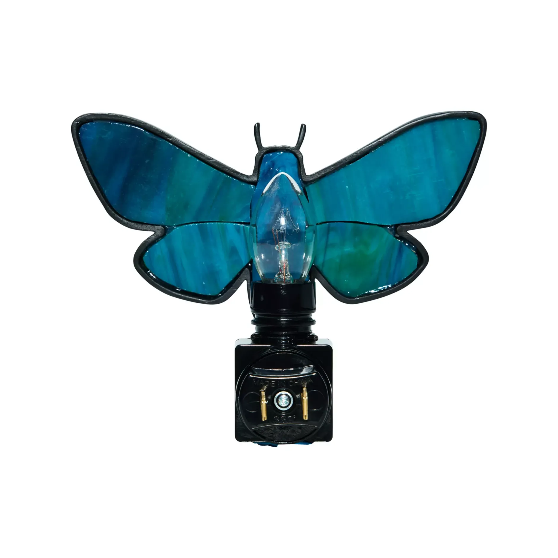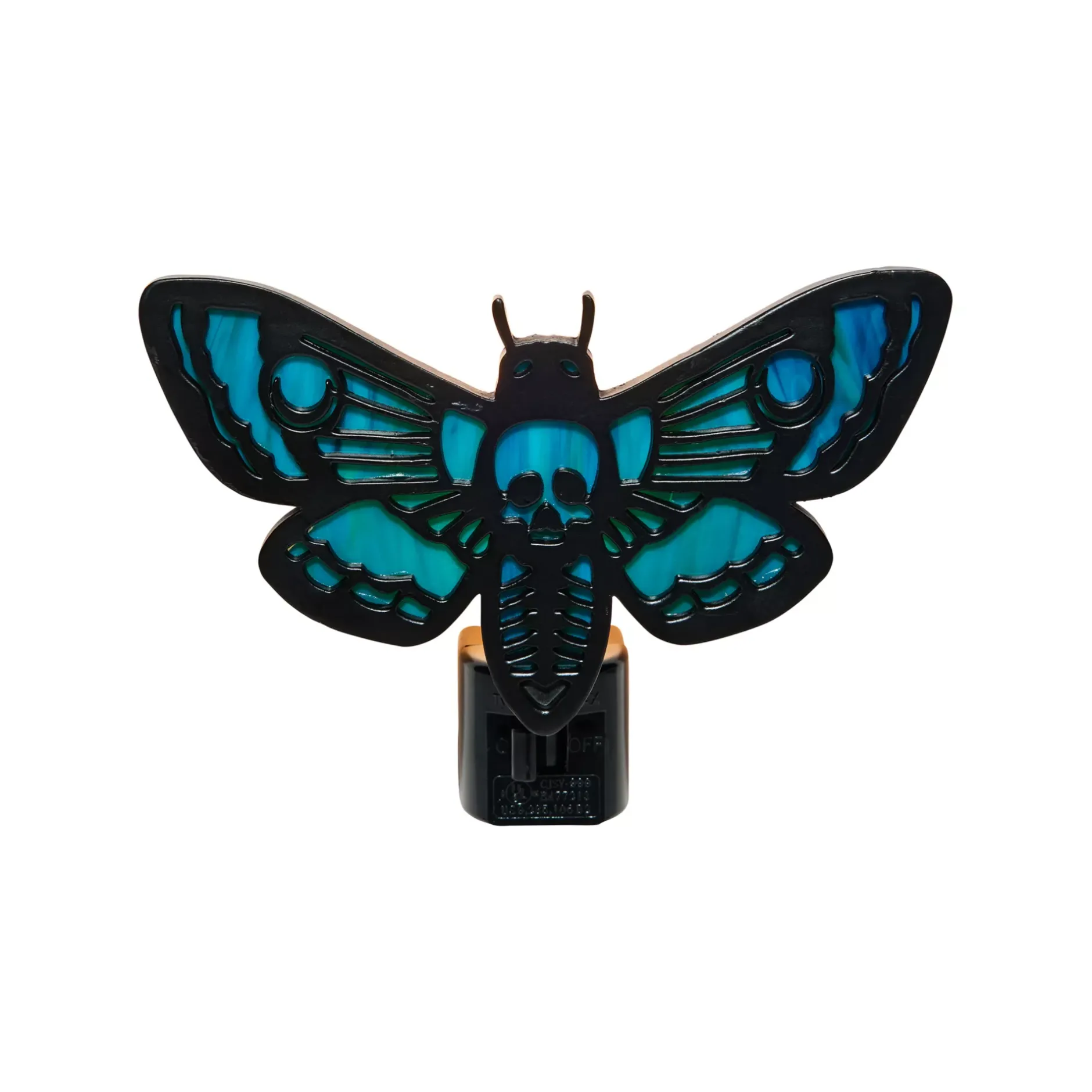Chase away the dark in style when you display this Stained Glass Death Moth Nightlight! Made with smooth green glass and sturdy metal accents, this winged beauty is one creature of the night that you’ll want by your side.