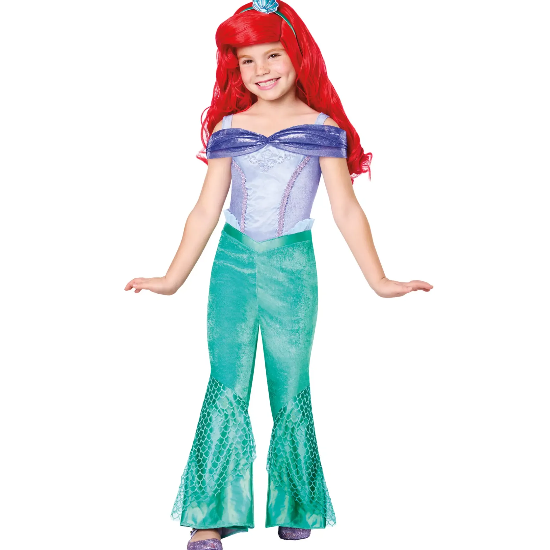Your child will instantly become the cutest fish in the sea when they wear this officially licensed Ariel Costume! This adorable outfit includes a colorful jumpsuit and a headband, providing your little one with everything they need to become the iconic Disney Princess!