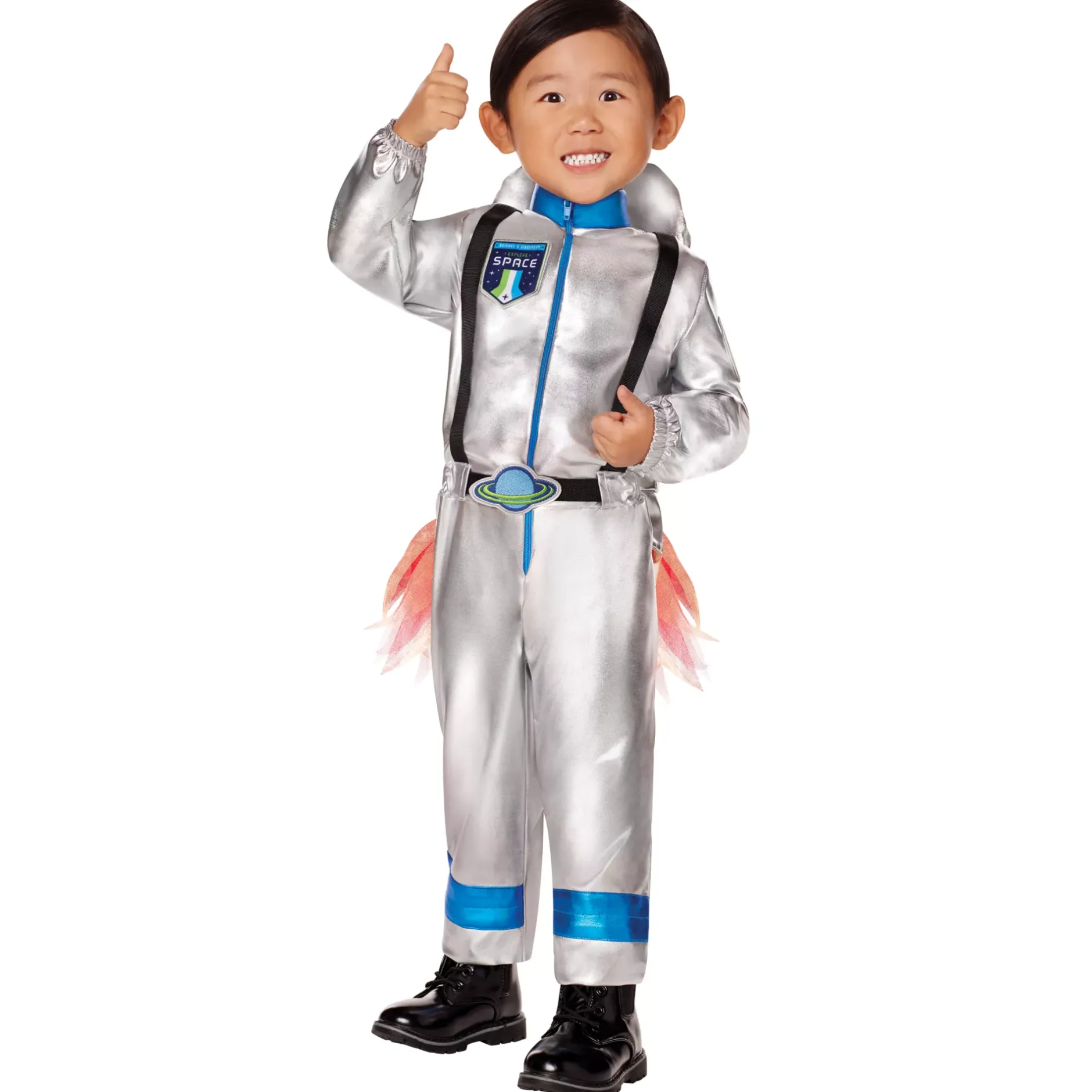 Prepare for liftoff! Your child will be ready for the ultimate adventure when they gear up in this Astronaut Costume. Featuring a realistic space jumpsuit and a detachable jetpack to match, this outfit has everything they need for a trip to the moon.
