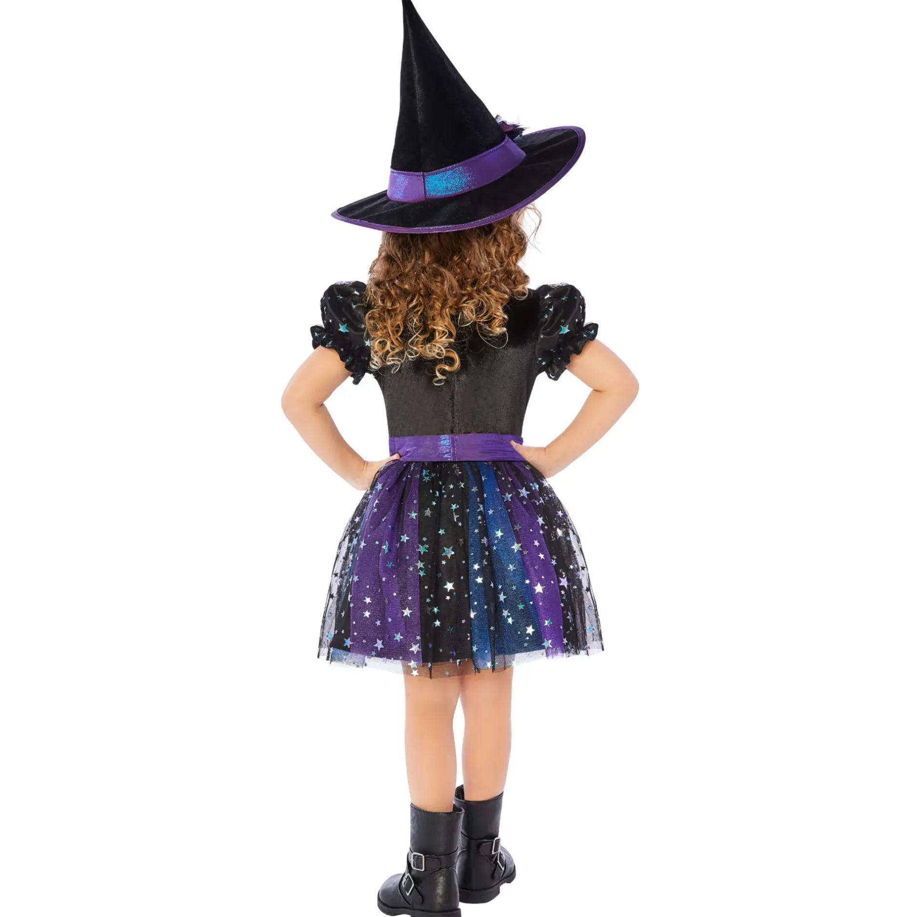 Brew up some fun in this Enchanted Light-Up Witch Costume! Rich black and purple accents make this witch costume spooky and sweet. A tulle skirt is adorned with dainty stars and glowing lights. Top off the look with a matching witch hat complete with a stunning star print under its brim!
