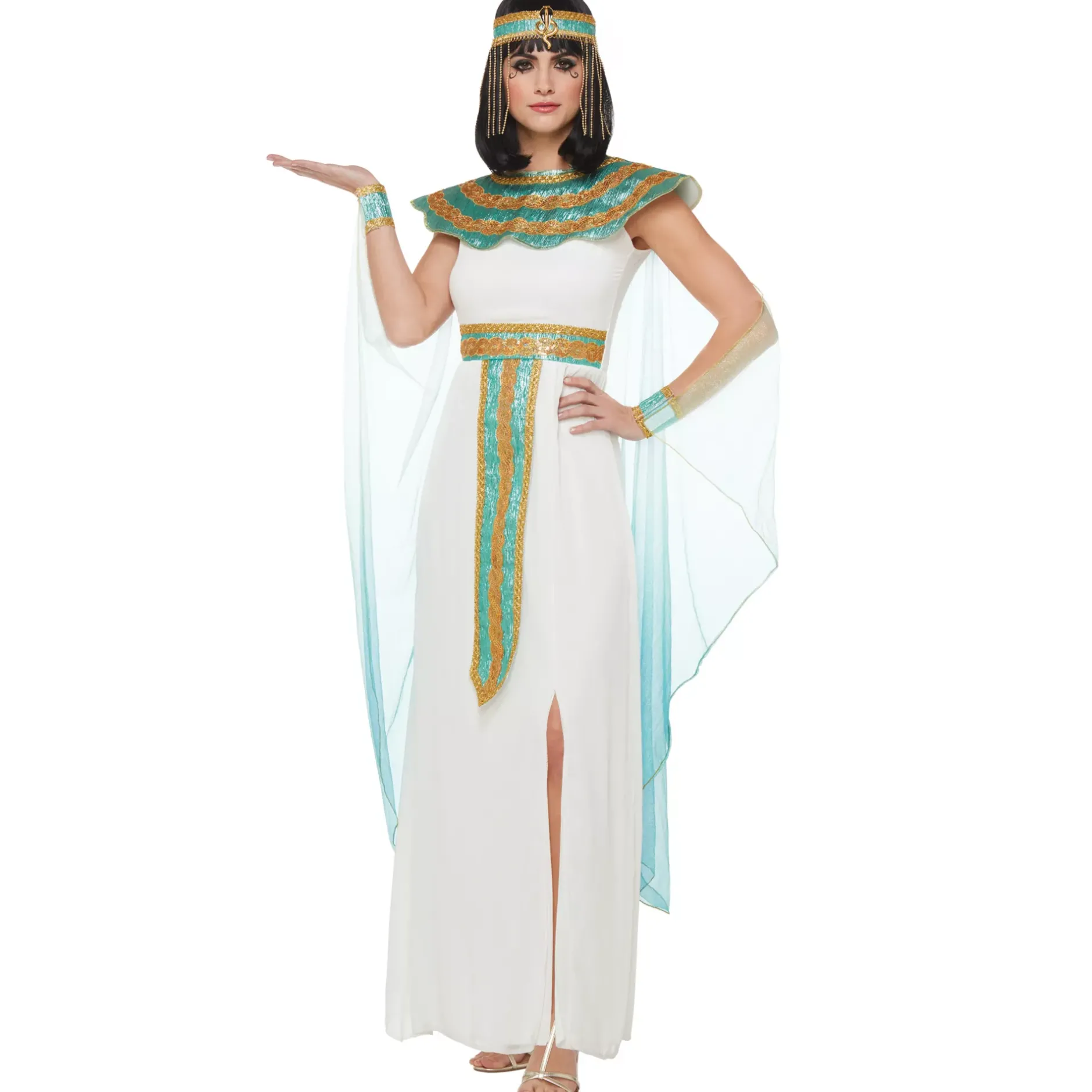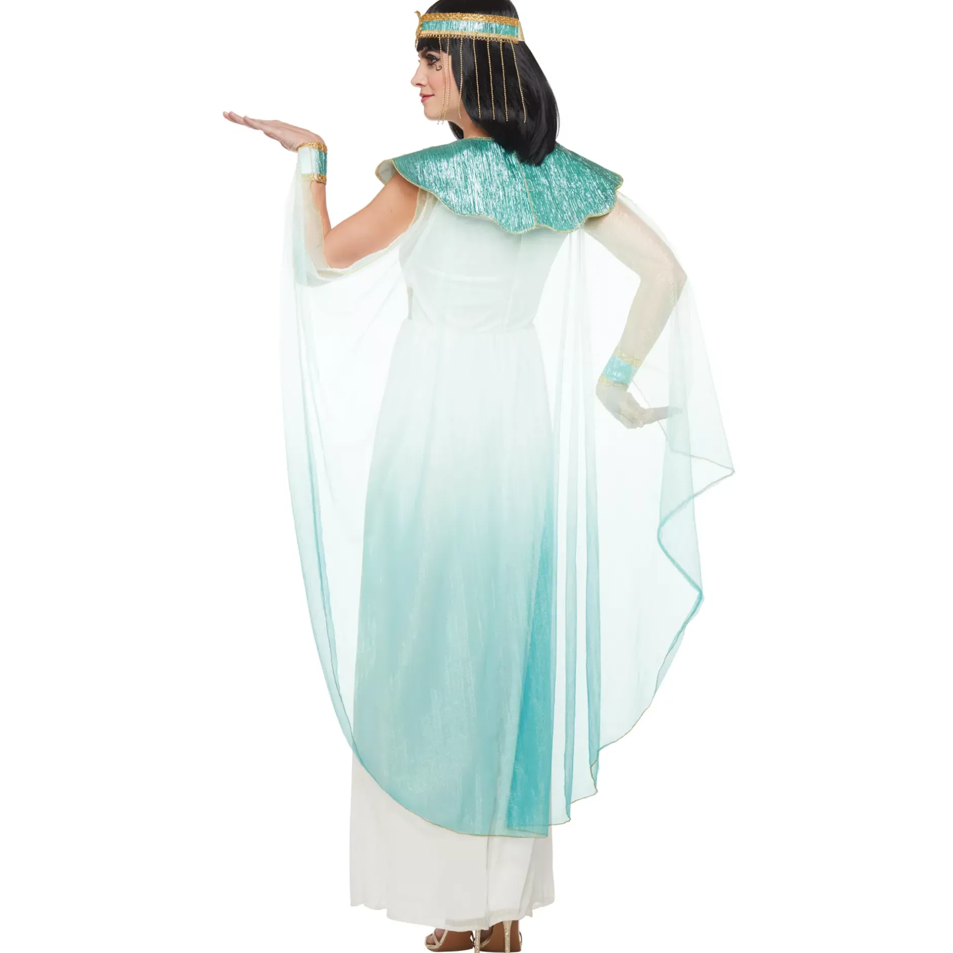Strut your stuff like the Queen of the Nile herself when you wear this gorgeous Cleopatra costume! Layers of white fabric are detailed with gorgeous turquoise and gilded accents like the removable cobra brooch that’s strategically placed upon the headband. The coordinating accessories will add the finishing touches and transform you into one of Egypt’s most famous and beautiful pharaohs.
