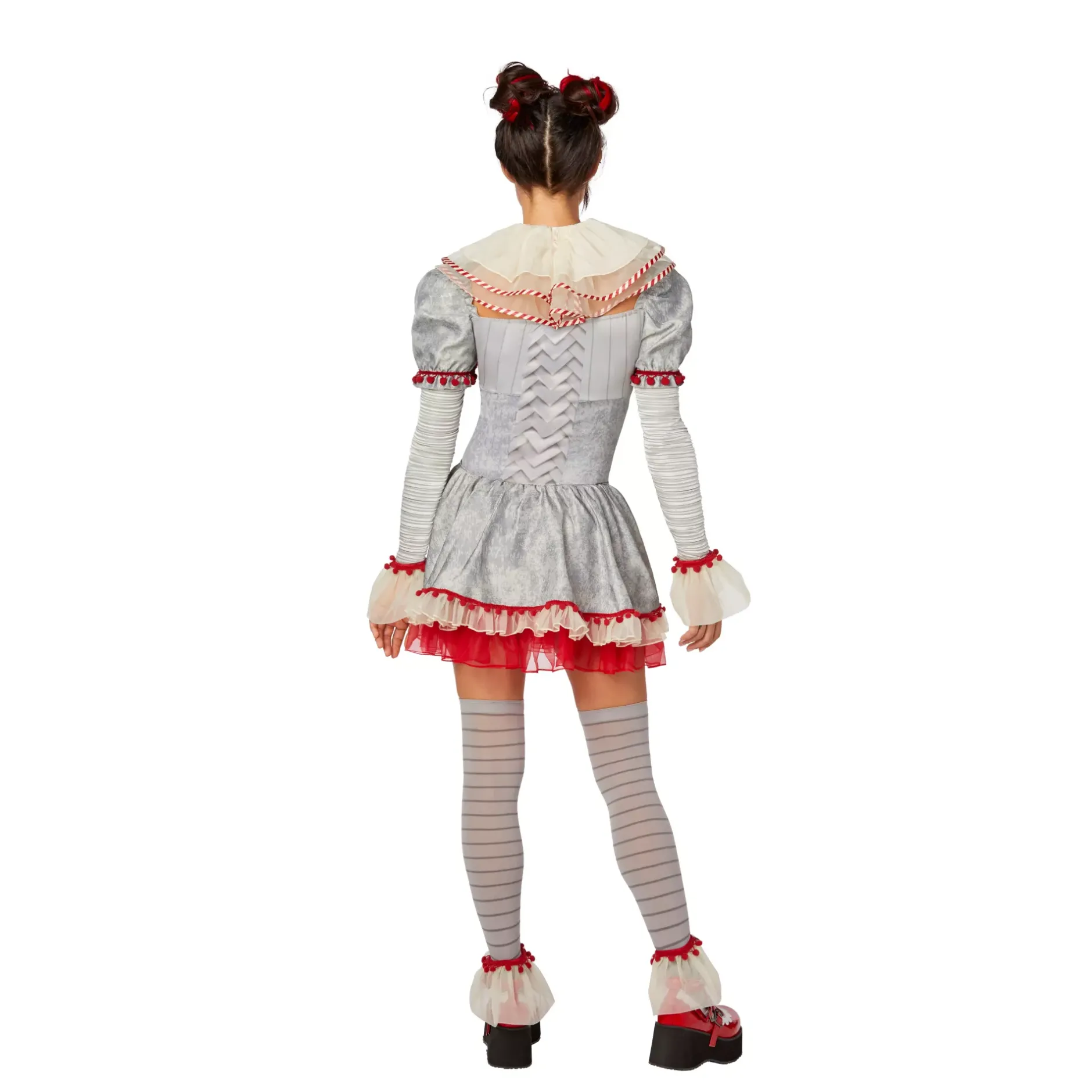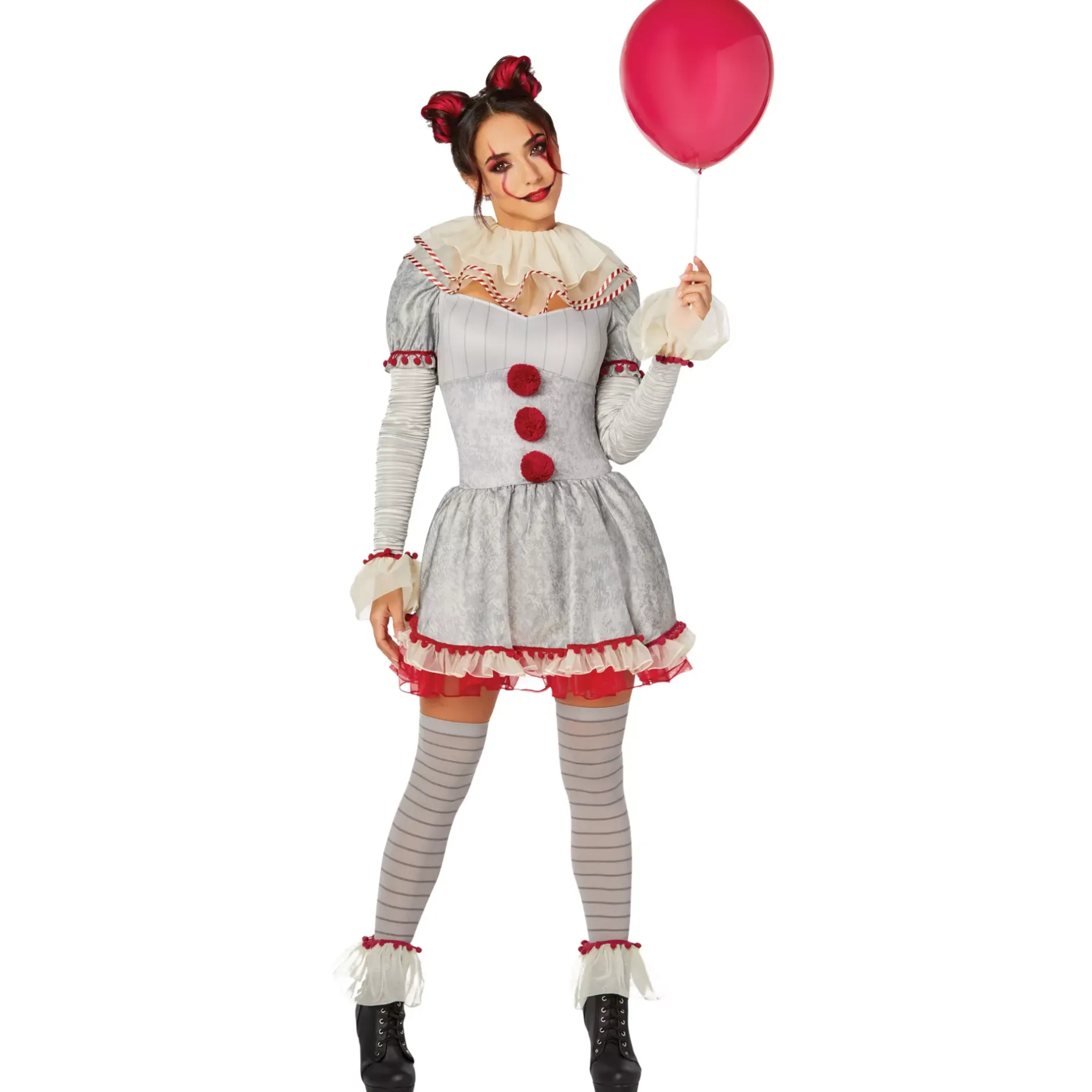 Scare the heck out of your friends and family this Halloween when you put on this terrifying costume inspired by the movie It: Chapter Two! This officially licensed Adult Pennywise Clown Dress Costume includes a dress, a collar, cuffs, and thigh highs, helping you nail the iconic look that gives people nightmares!