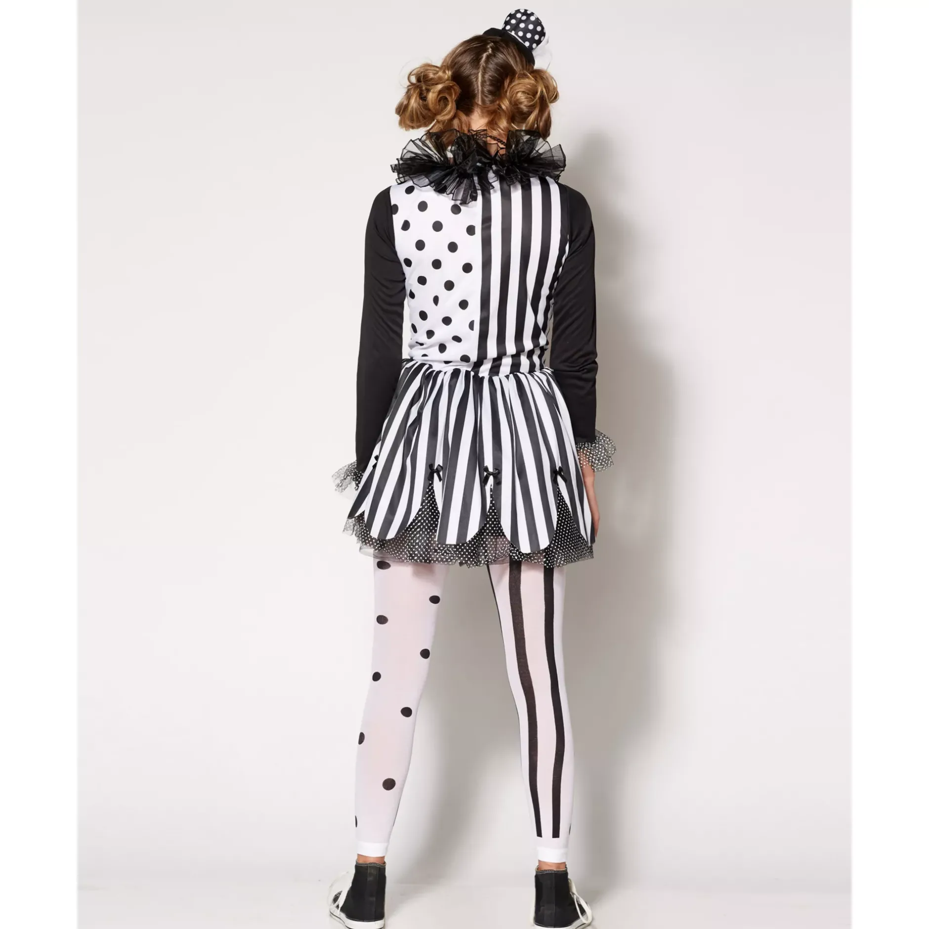 There’s nothing funny about what you’re dressing up as this Halloween. The killer clown costume is the perfect way to show people what you’re really about. The black and white stripped dress with polka dots, hat and footless tights will you the perfect clown look!