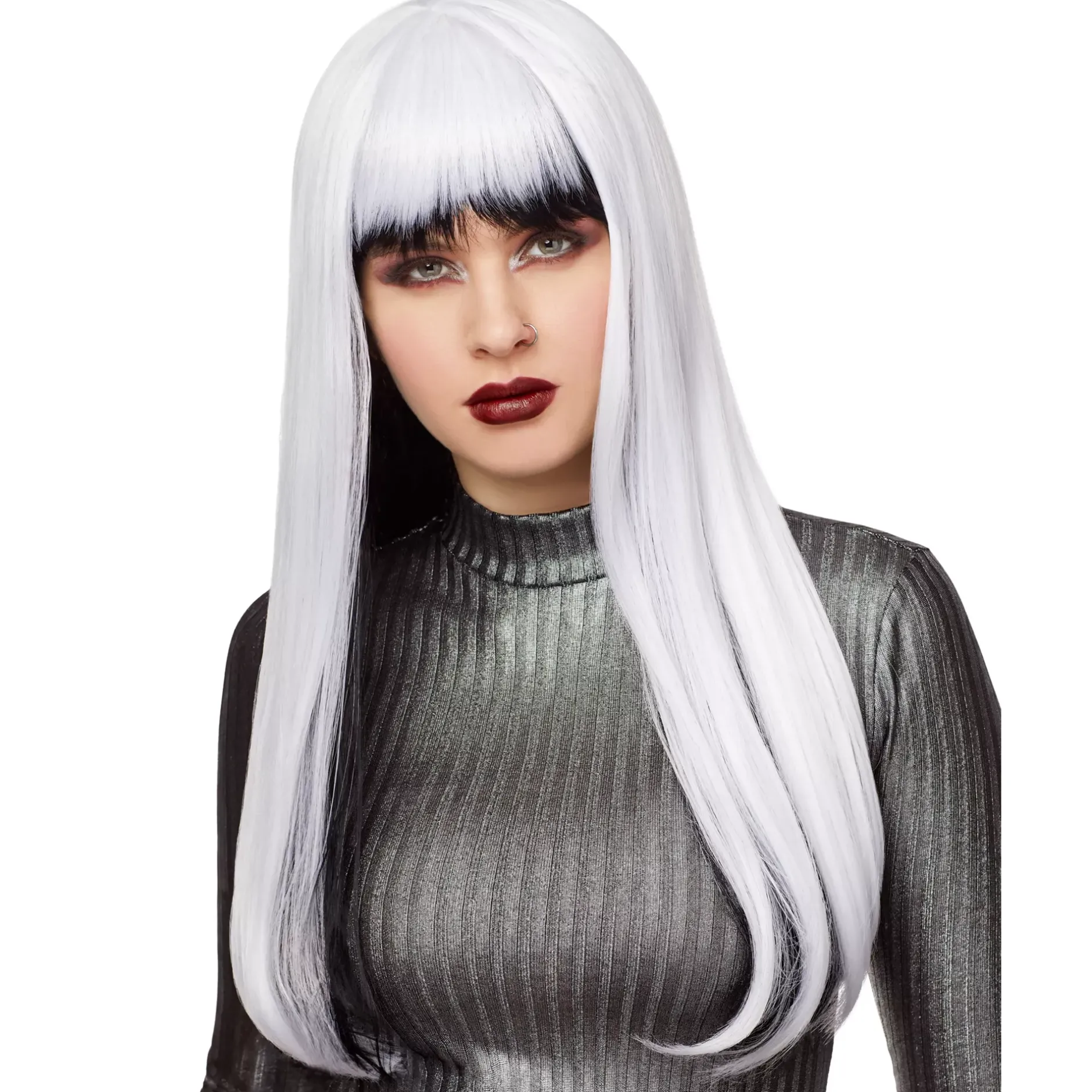 This wig is perfect for any costume. The white coloring and black tips are sure to add an element to your costume that you never knew you needed!